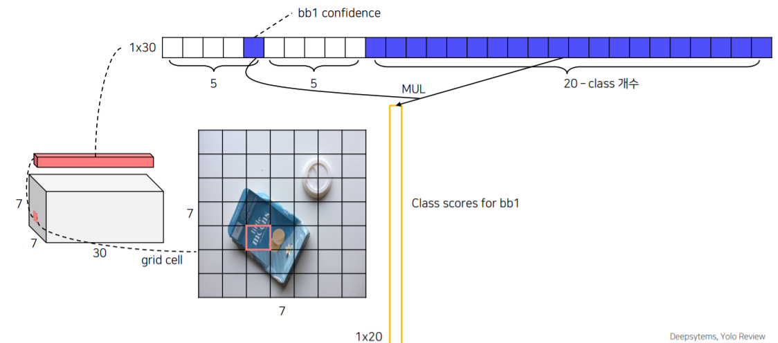 4. ๋๋จธ์ง 20๊ฐ์ ์ฑ๋์ class์ score๋ฅผ ์๋ฏธํจ (yolo์์ ์ฌ์ฉ๋ํ์ค์นผ ๋ฐ์ดํฐ์ ์ ํด๋์ค๋ ์ด 20๊ฐ)