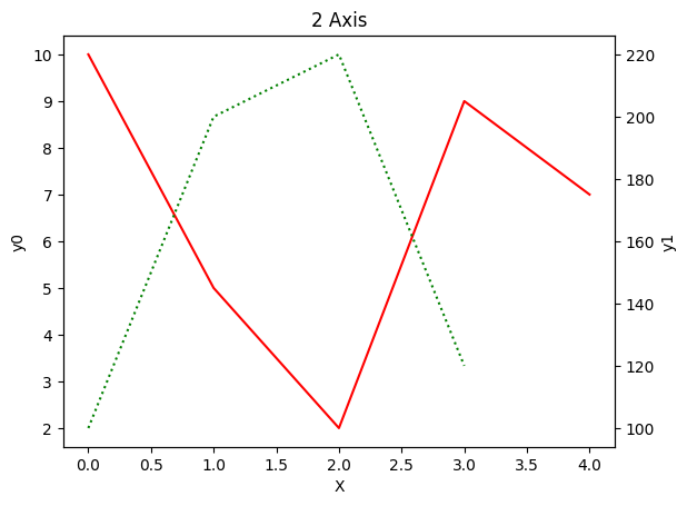 ax1.plot([100,200,220, 120],'g:', label='y1')