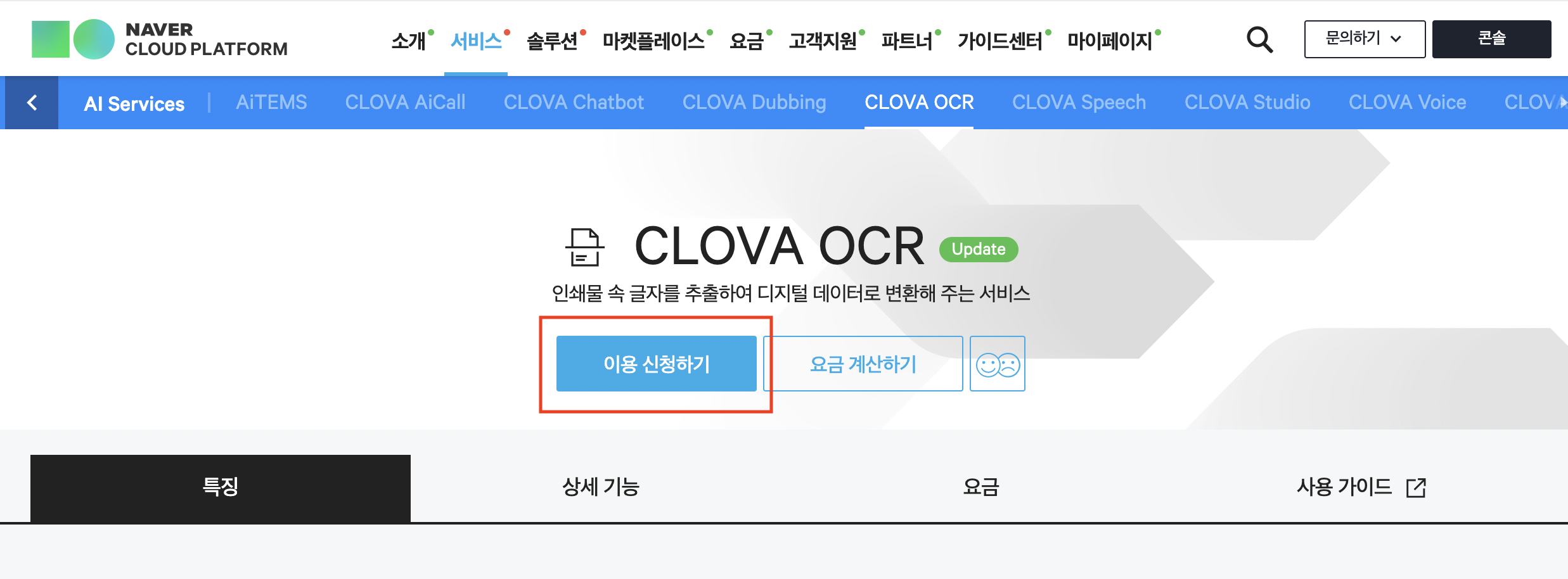AI Service -> CLOVA OCR ํด๋ฆญ