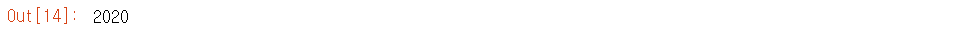 ์ฒซ ๋ฒ์งธํ(0)์ ๋๋ฒ ์งธ ์ด(1)์ ์์น์ ์๋ ๊ฐ์ธ 2020์ ๋ฐํํ๋ค.