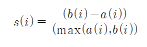 ๋ฐ๋ผ์ i๋ฒ์งธ ๋ฐ์ดํฐ ํฌ์ธํธ์ ์ค๋ฃจ์ฃ ๊ณ์๊ฐ s(i)๋ ์์ ๊ฐ์ด ์ ์ํ๋ค.