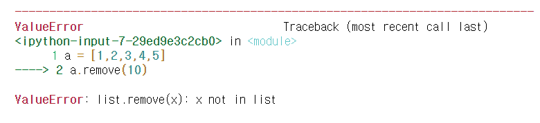 ์๋ฌ ๋ฉ์ธ์ง - ValueError : list.remove(x) : x not in list