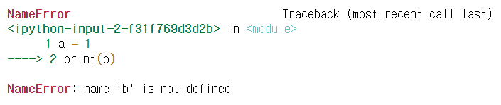 ๋ณ์ b๋ ์ ์ธํ์ง ์์์ NameError๊ฐ ๋ฐ์ํ๋ค.