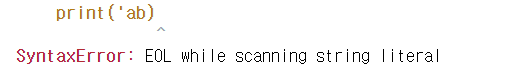 ์๋ฌ ๋ฉ์ธ์ง - SyntaxError : EOL while scanning string literal